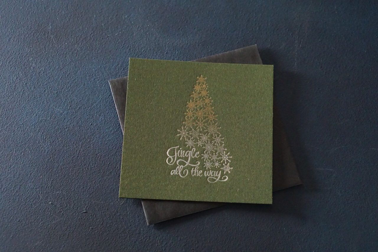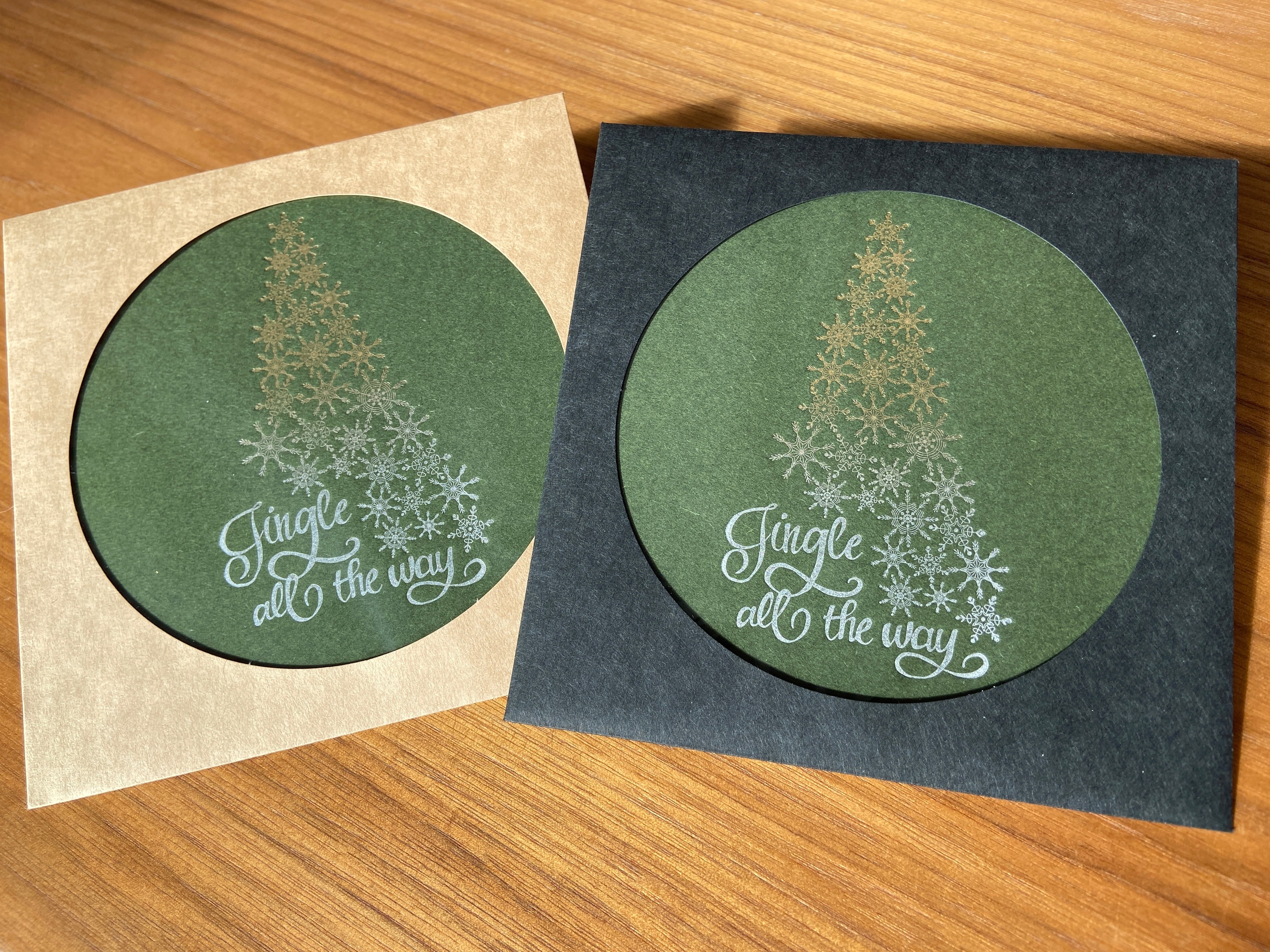 正方形のカードは封筒に入ってもツリーが見えます。