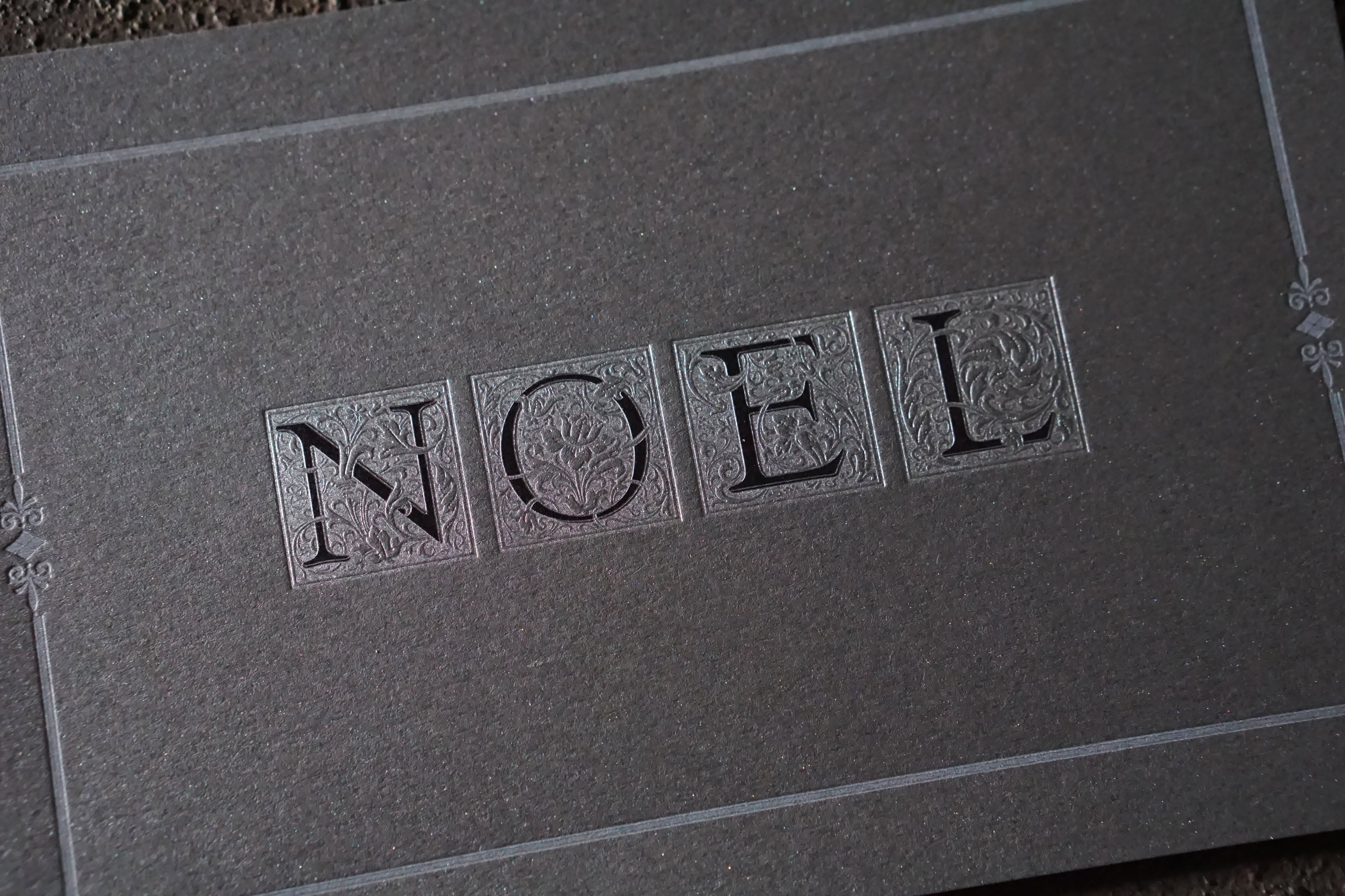 Goudy Initialsという美しい書体を使ったクリスマスカード。