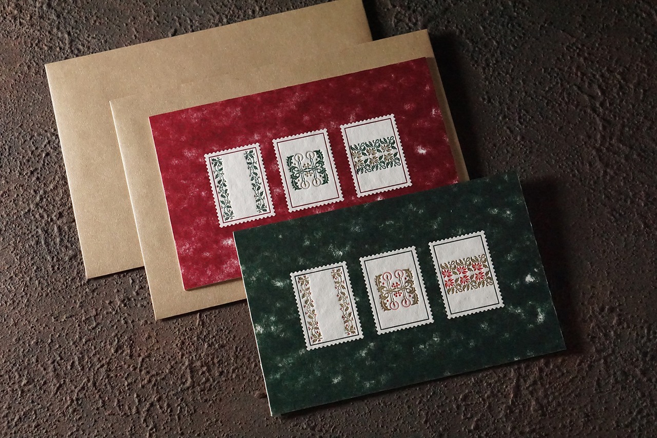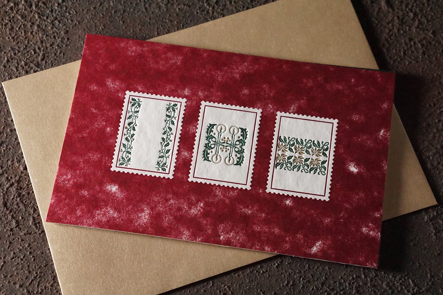 ホーリーな切手をモチーフにしたクリスマスカード。
